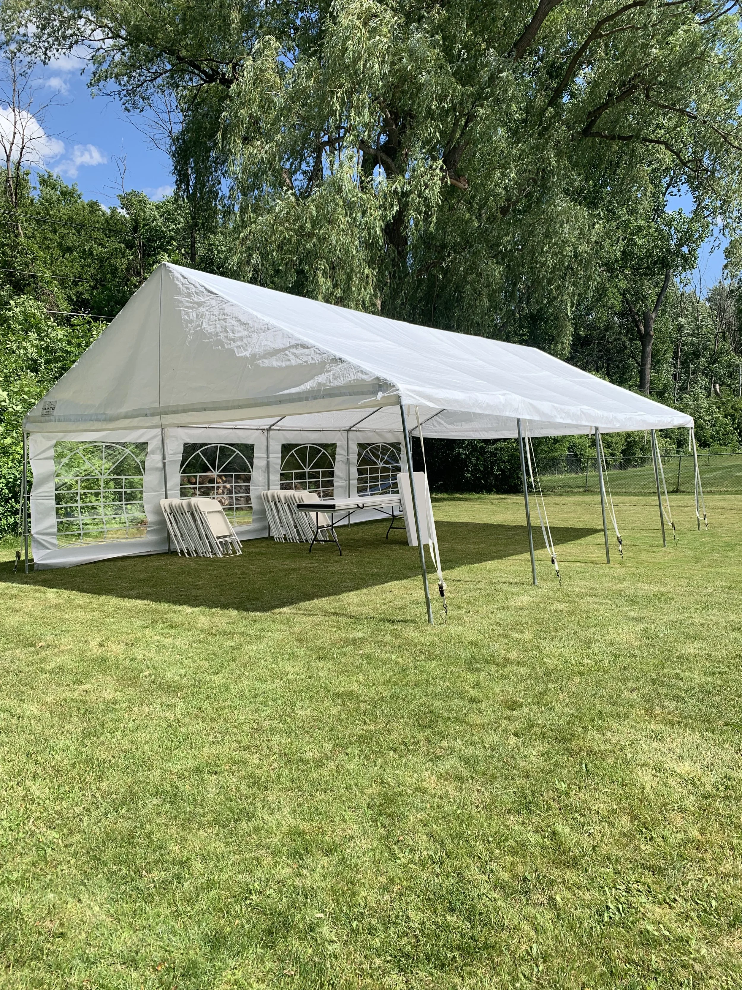 The 20x30 A-Frame offers you full usable space, allowing for a flexible event layout. This tent is ideal for any outdoor or fully enclosed event. Sides are available to go around the entire tent. Great tent for events including weddings, family gatherings, birthday parties, graduations, vendor shows, and much more. The tent must be on grass. Fits approximately 60-70 people